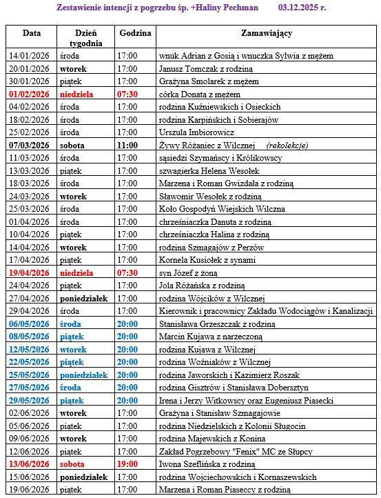 Msze na bieżący tydzień